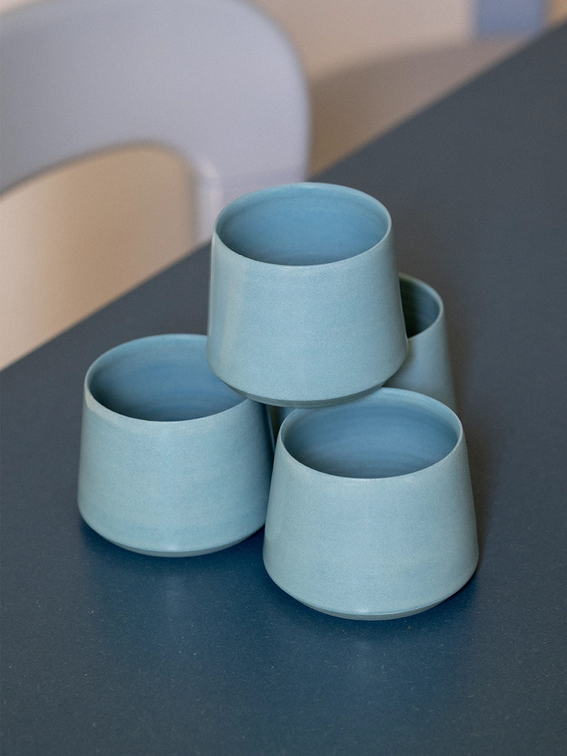Meadow is a collection of cups in colours inspired by the British countryside - poppies, cornflowers, calendulas, and the dry grasses that take over towards the end of summer. Each tone is mixed by hand, reflecting the natural palette of wild meadows in bloom and in rest.